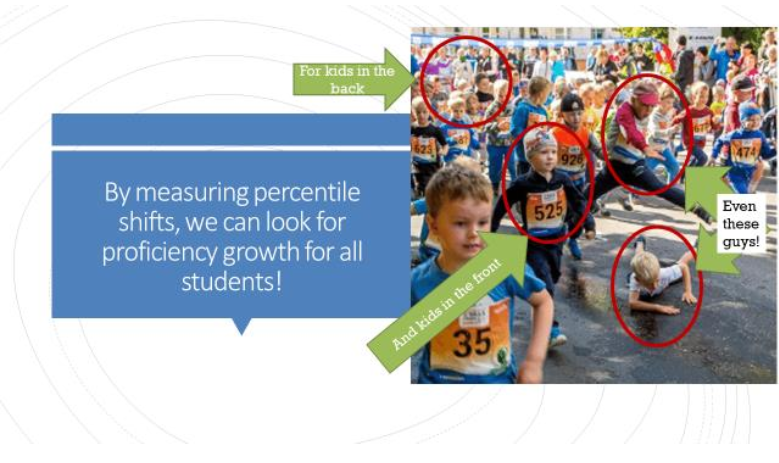 I decided to include growth data–here represented by mean conditional growth index–in response to a report on the Illinois State Board of Education’s Technical Advisory Council’s April recommendation that Illinois include shifts in student growth indices as part of the new school report card. Including MAP conditional growth index scores was first step in the ongoing capacity-building I continue to facilitate with district staff regarding how testing outcomes relate to school accountability.