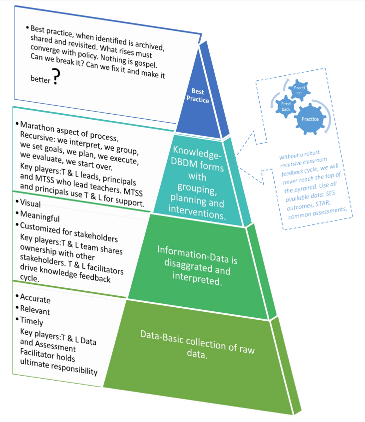 This Data Systems Model was created to give leadership staff a touchstone for who owns specific data processes. The goal was to prevent work redundancies and put data in the hands of the staff who can best impact student achievement.